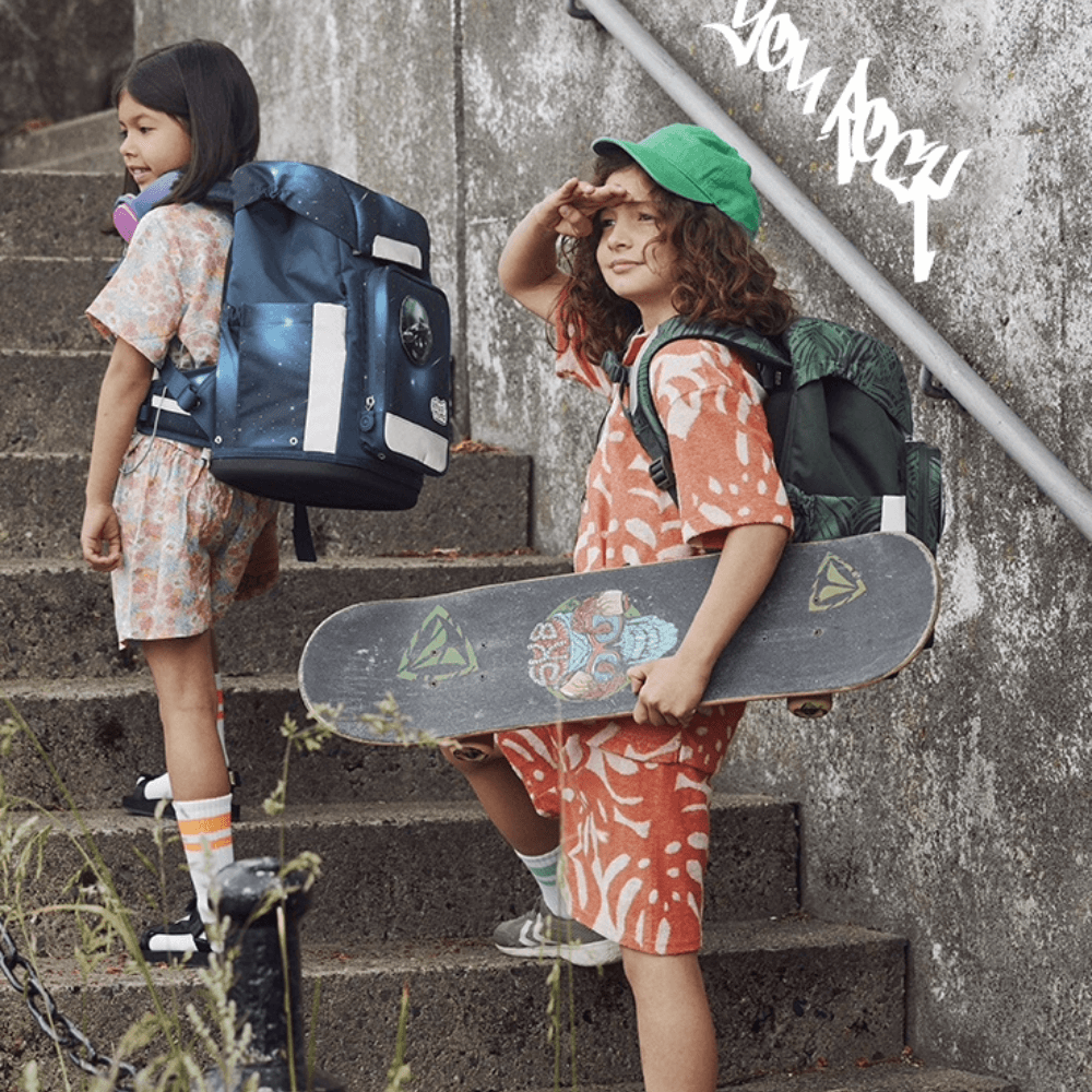 Das Rucksackmodell Rebel kombiniert die Coolness eines Softbags mit den ergonomischen Trageeigenschaften einer bis ins kleinste Detail durchdachten Schultasche. Leicht, geräumig und standfest dank fester Bodenplatte bietet der Rebel Platz für alle Schulutensilien. Damit Hefte und andere Arbeitsmaterialien vor Eselsohren sicher sind, ist in diesem Set zusätzlich eine Heftbox enthalten.