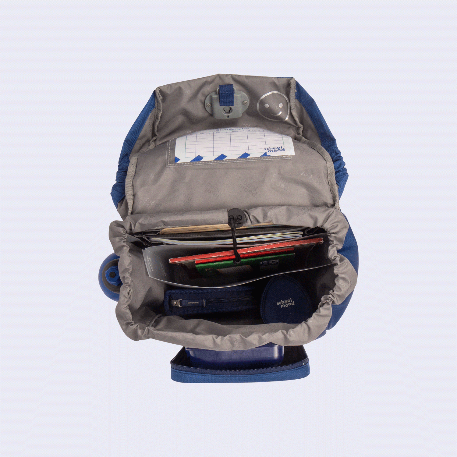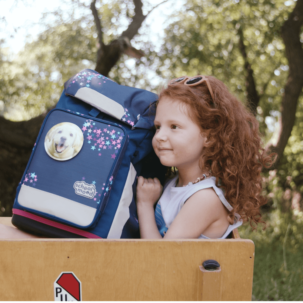 - 8-teiliges Set: Ranzen, Turnbeutel, gefülltem Etui, Schlamperrolle, Brustbeutel, Brotdose, Patchy-Set und Heftbox